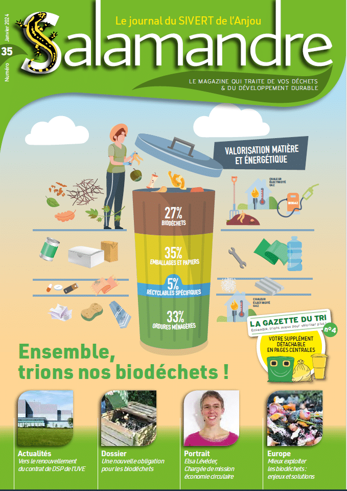 Vous trouverez également l'actualité du SIVERT de l'Anjou avec le renouvellement de la DSP et le projet d'un éventuel agrandissement de l'Unité Salamandre avec une seconde ligne de four.