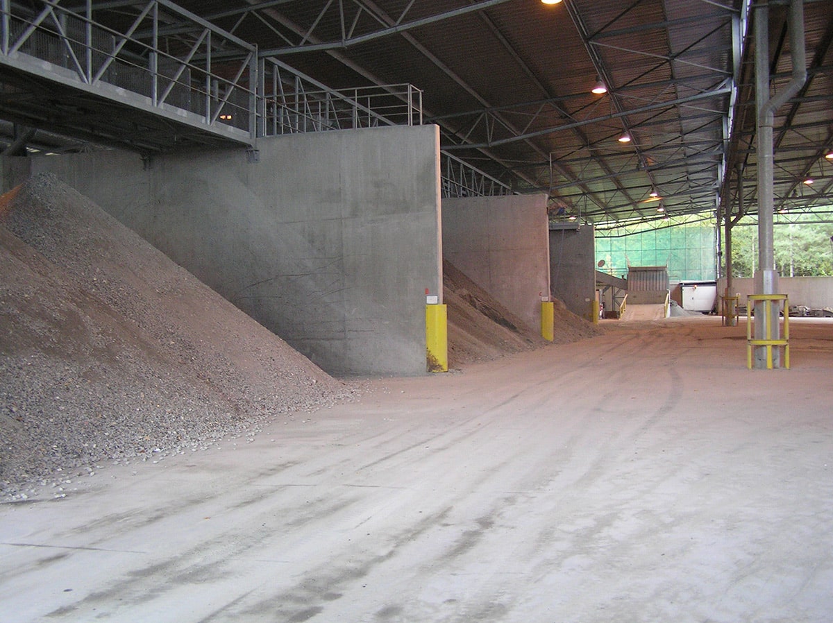 En sortie de four des résidus minéraux solides n’ayant pas brûlés : les mâchefers, sont stockés pour analyser leur potentiel polluant. Ils seront par la suite valorisés en technique routière permettant d’économiser des graves des carrières du lit de la Loire.