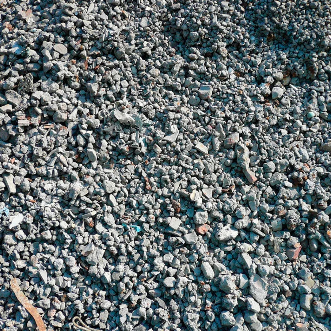 En sortie de four, les résidus solides sont récupérés : il s’agit des mâchefers, constitués de la partie minérale des déchets. Ils servent de remblais en technique routière.