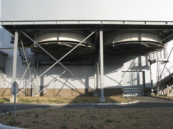 Un hydrocondenseur récupère, en sortie de turbine, le maximum d’énergie présente dans la vapeur. Cette dernière permet de condenser en eau à basse température (60°C), en dessous de la pression atmosphérique. L’eau chaude produite est acheminée depuis l’UVE jusqu’aux serres via un réseau enterré, par le biais d’un échangeur thermique.